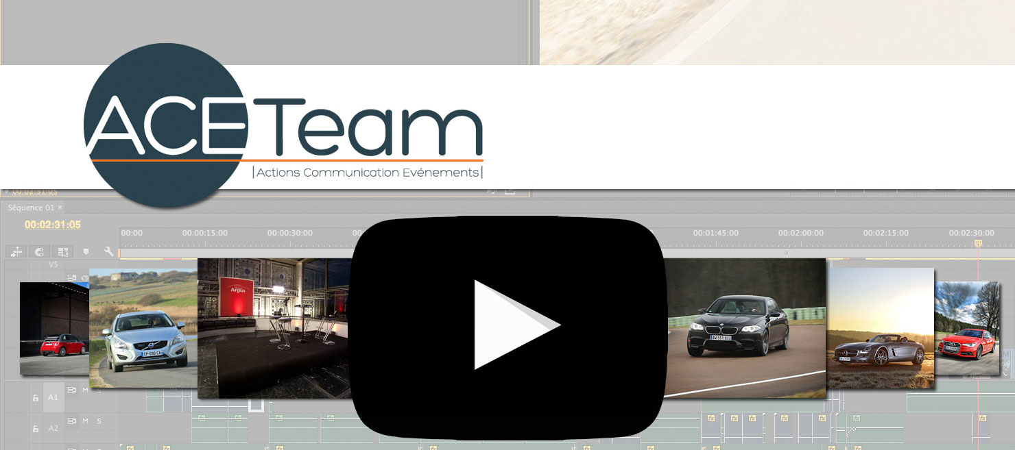 Grâce à son équipe de cadreurs, l'agence ACE Team réalise de nombreux tournages vidéos sur des évènements ou encore à partir de scénario élaboré par ses créatifs. Pour davantage de réactivité et de confidentialité tous les montages se font directement au sein même de l'agence.